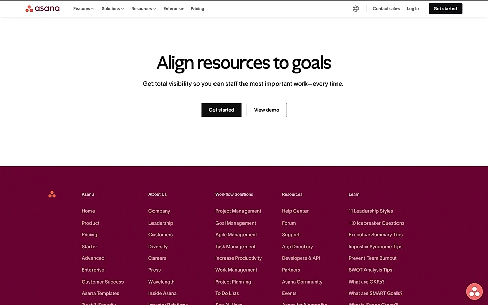 On Asana’s product landing pages, the call-to-actions align with the specific content of the page. For example, the CTA on the resource planning page reminds visitors what you can achieve with this specific solution and why it’s important.