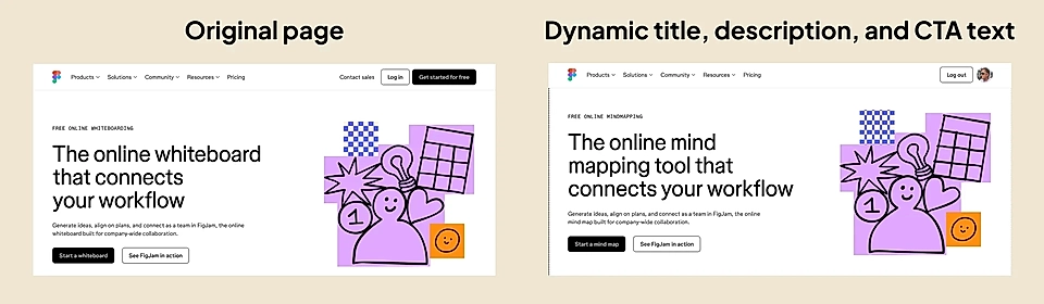For example, Figma could have created a dynamic page title, description, and CTA button for the "Whiteboard" page we took a look at earlier.