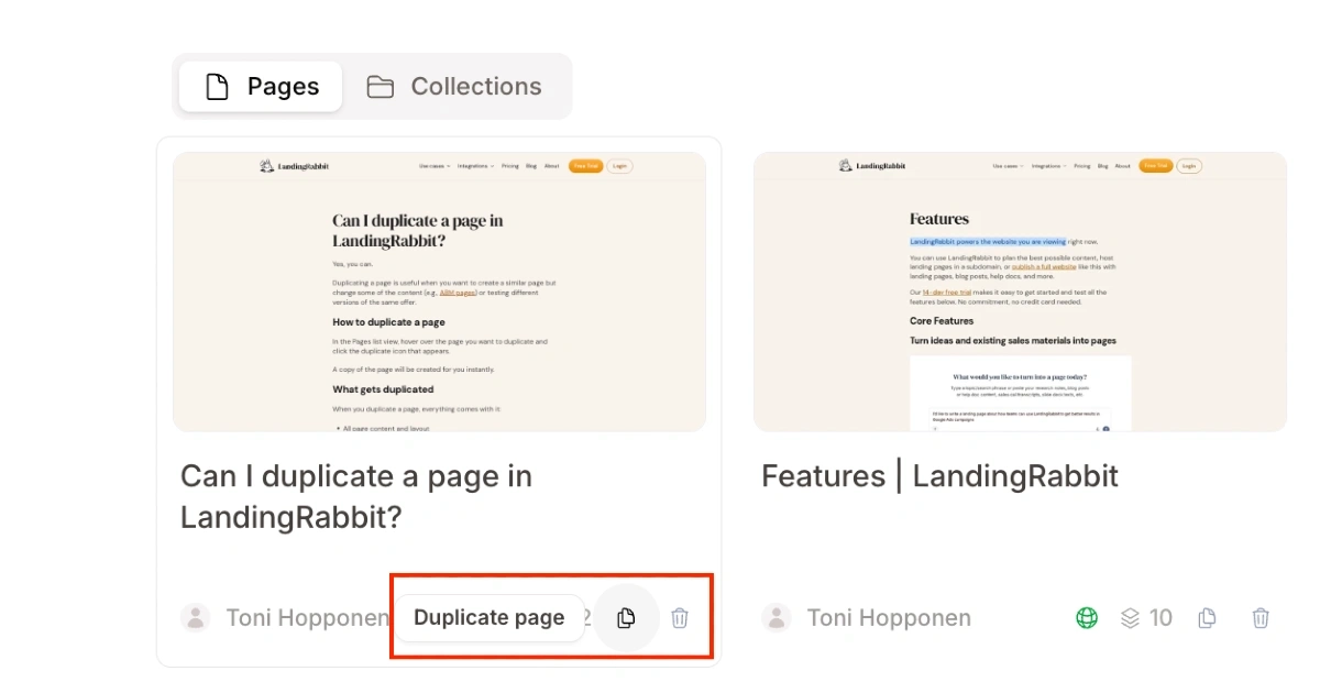 How to duplicate a page in LandingRabbit