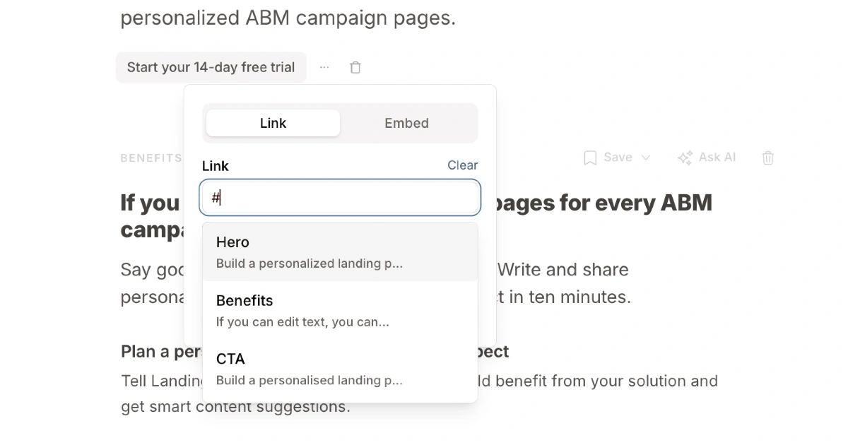 How to add anchor links to my LandingRabbit page