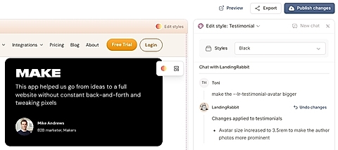 Ask the chat (for example, "make the logo bigger")