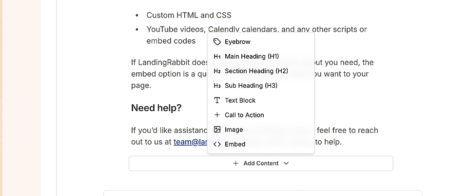 If LandingRabbit doesn’t yet support a specific layout you need, the embed option is a quick way to add exactly what you want to your page.
