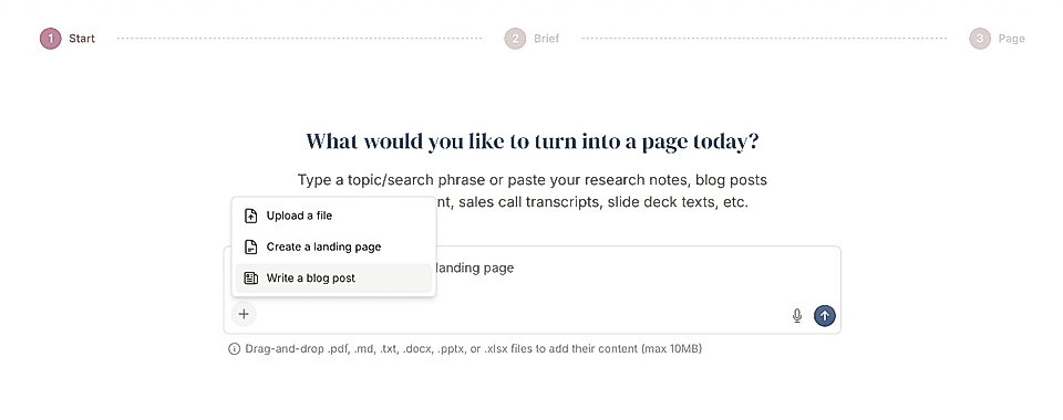 Give LandingRabbit a blog post idea or paste your existing blog content, for example, something written in Claude, ChatGPT, or stored in Google Docs.