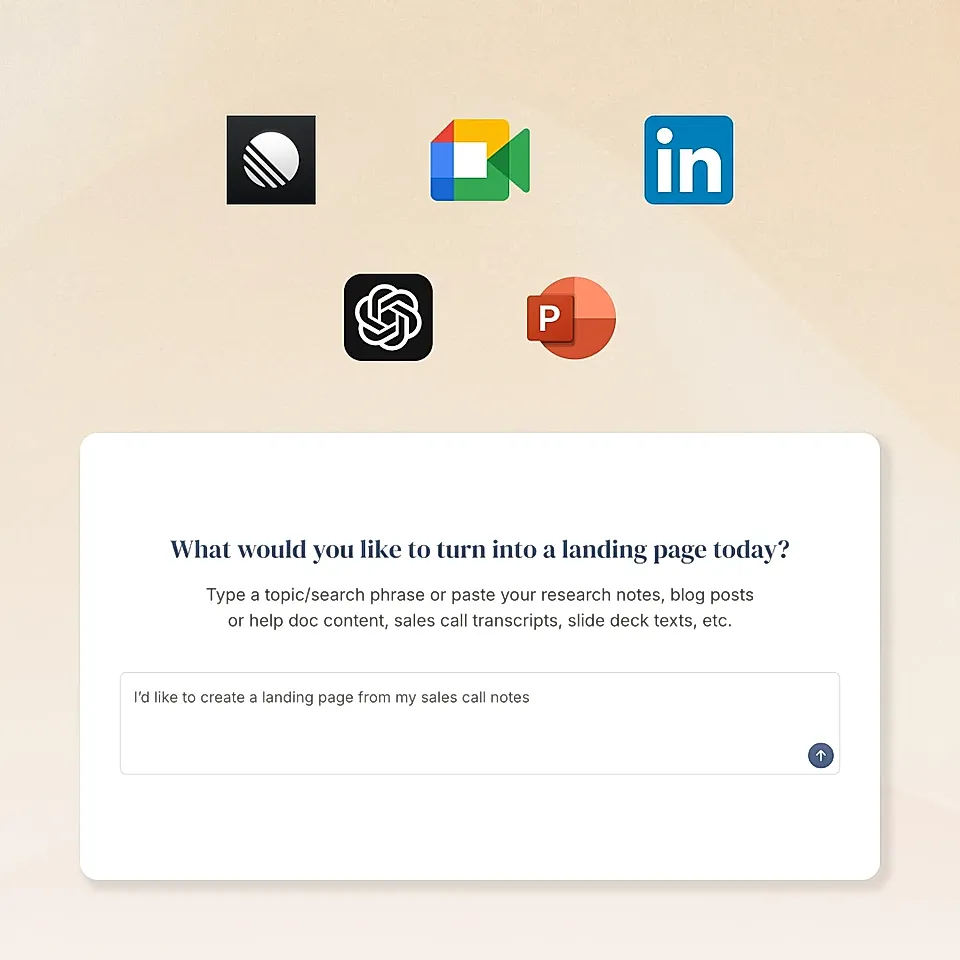 Sales pitch, call notes, product docs, and more. LandingRabbit turns them into marketing pages.