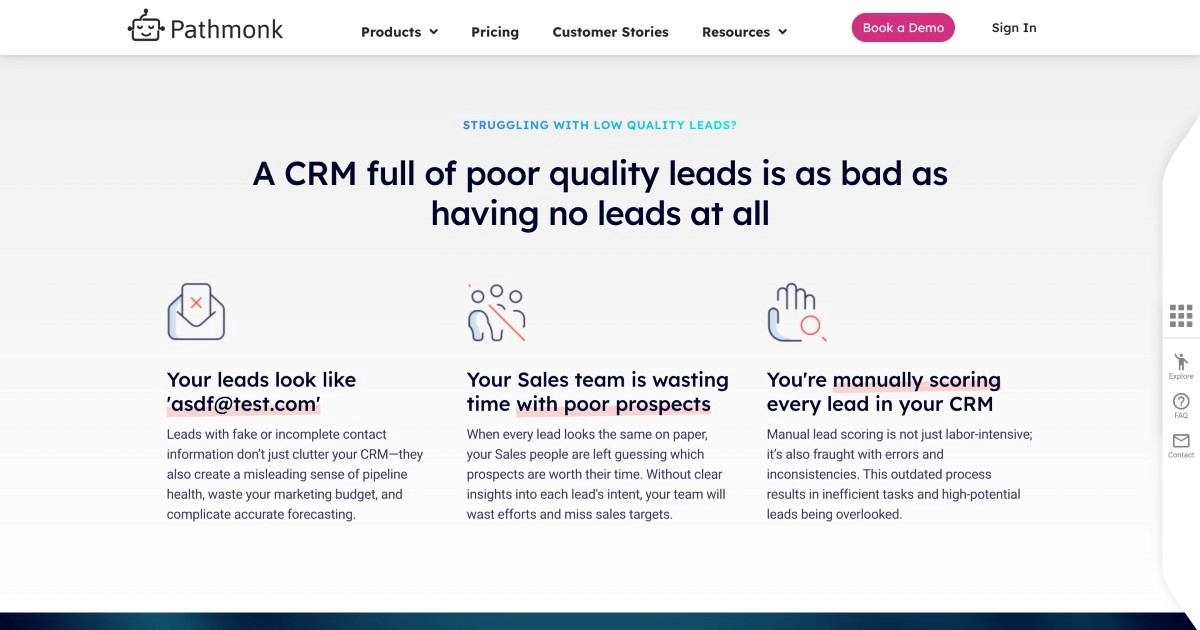 SaaS Landing Page Examples: Problem section with Pathmonk