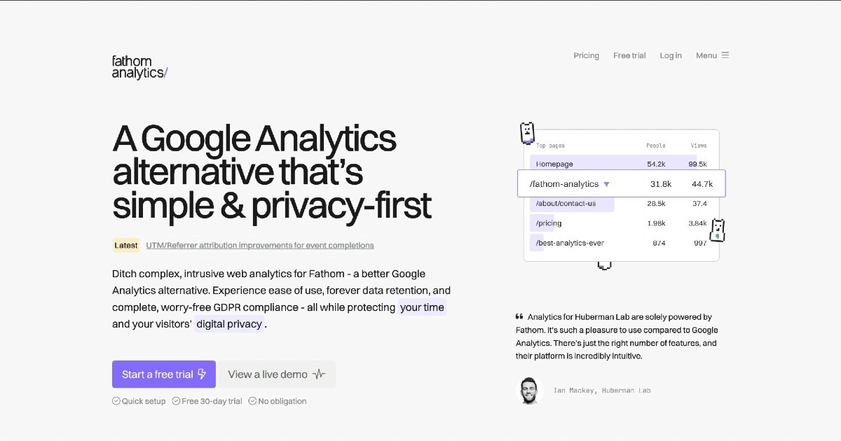 SaaS Landing Page Example: Hero with Fathom Analytics