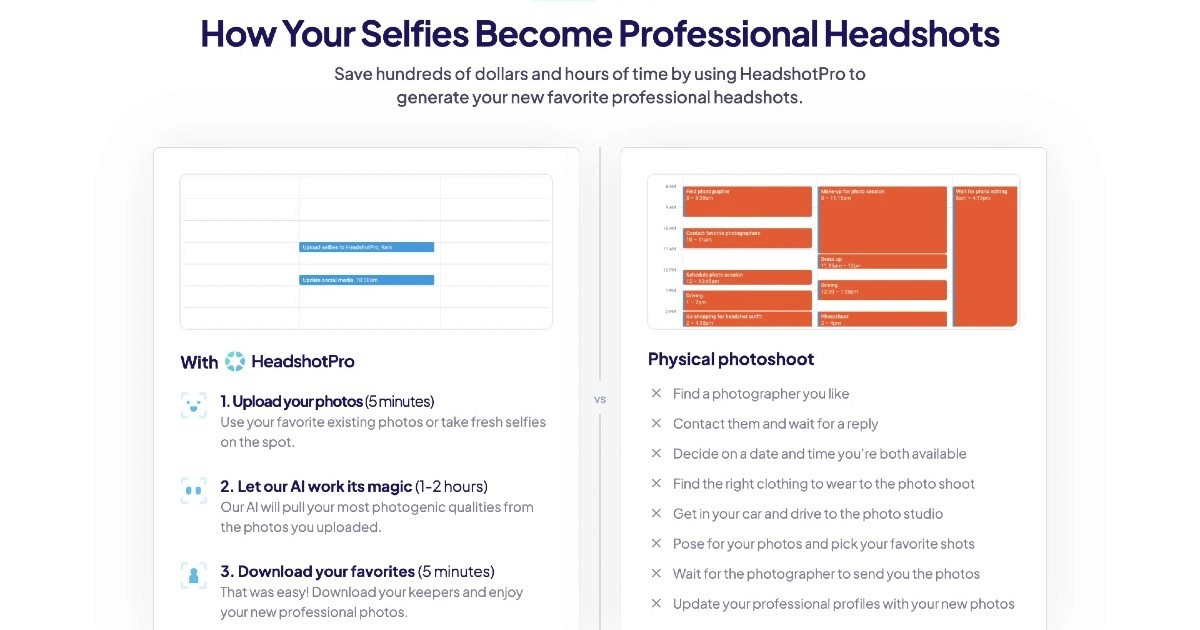 SaaS Landing Page Example: Problem Section with HeadshotPRO