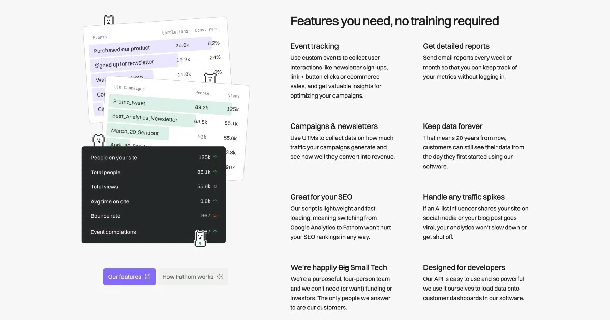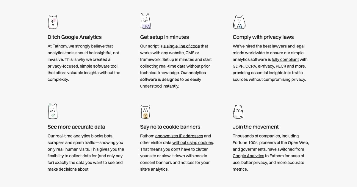 SaaS Landing Page Example: Benefits with Fathom Analytics