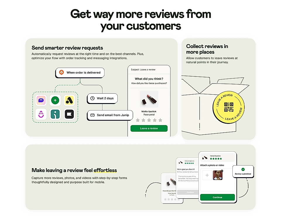 Junip is built for eCommerce brands that currently use basic review platforms like Yotpo but struggle to efficiently collect, display, and make the most of customer reviews. Junip provides a review platform that seamlessly integrates with major eCommerce tools, offering an easy way for customers to submit and syndicate reviews. Key features include photo/video reviews, Google Shopping integration, customizable forms, and marketing automation. This helps brands build trust, boost product visibility, and increase customer conversions through authentic reviews.